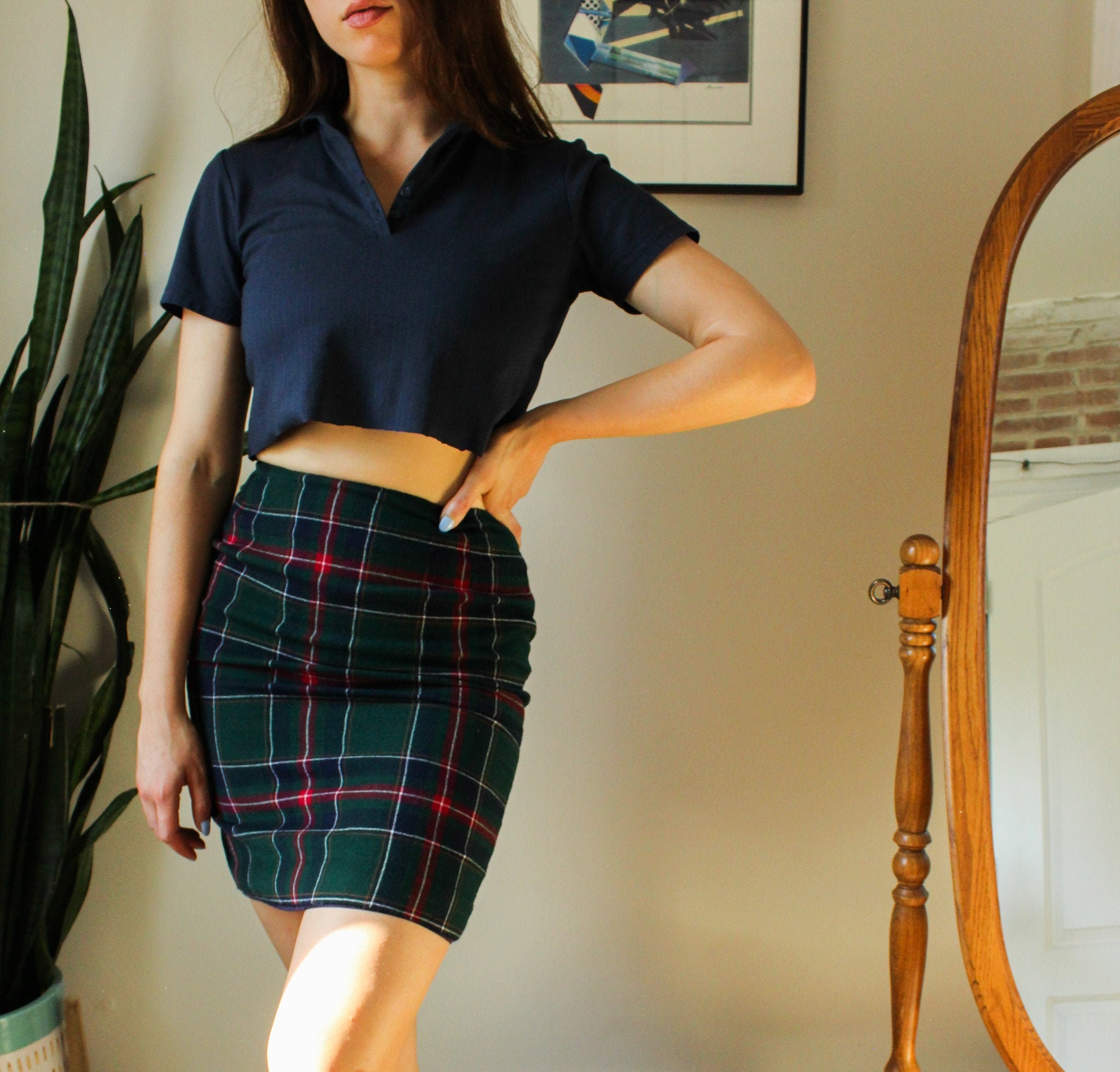 Vintage Wool Pencil Skirt High Waist Skirt Green And Red Etsy